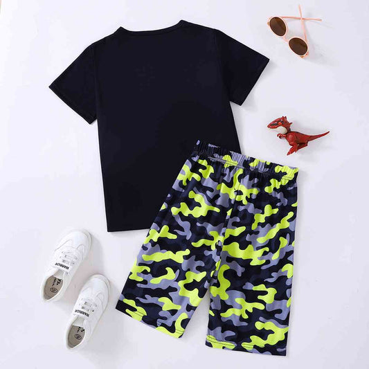 Boys Dinosaur Graphic Tee and Camouflage Shorts Set