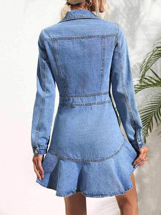 Buttoned Tie Front Long Sleeve Asymmetrical Neck Dress