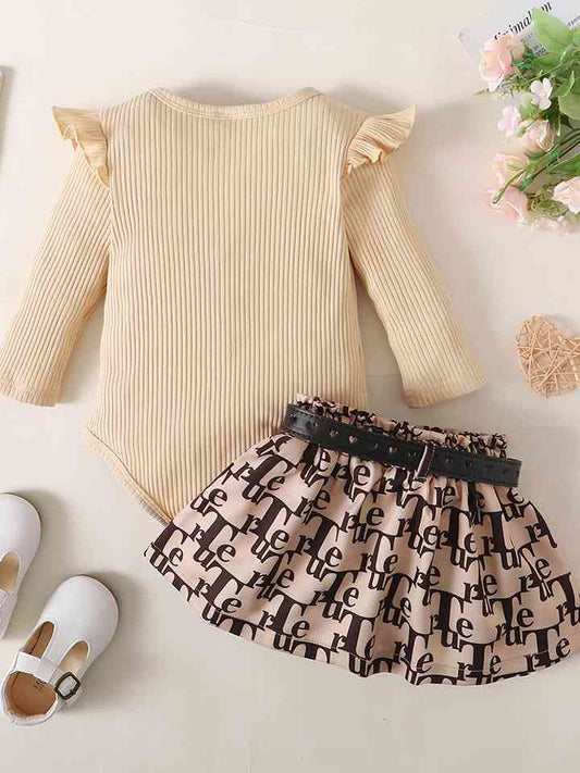 Ribbed Long Sleeve Top and Printed Skirt Set